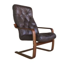 Особая форма спинки идеально повторяет контуры человеческого тела, благодаря этому достигается эффект максимального расслабления. Главная особенность — отсутствие задних несущих ножек, устойчивость обеспечивается за счет особой изогнутой конструкции каркаса. Прочный каркас из гнутоклееного шпона с легкостью выдерживает вес до 150 (ста пятидесяти) килограмм.