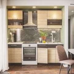 Кухонный гарнитур Маша-2 практичный комплект из ЛДСП длиной 1.6 метра в современном стиле спроектирован для удобного ежедневного использования.